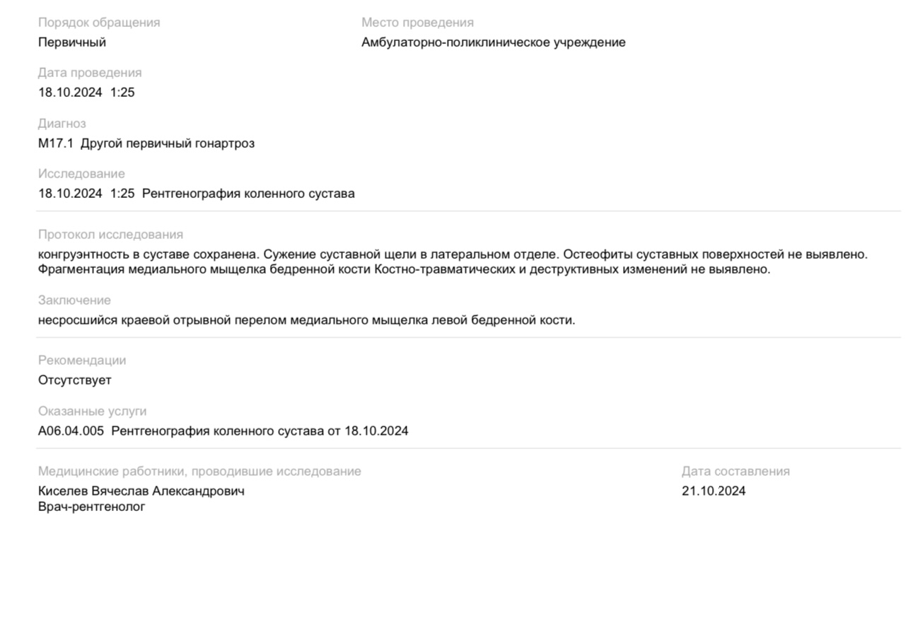 Диагноз: полный разрыв ПКС, гонартроз 1ст(на мрт есть,на рентгене без нагрузки нету), Нестабильность коленного сустава(попросил написать врача, т.к. есть передний выдвижной ящик)
