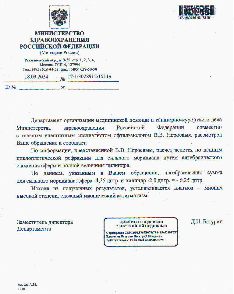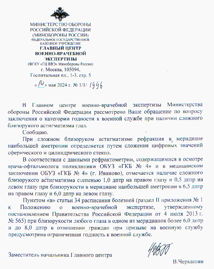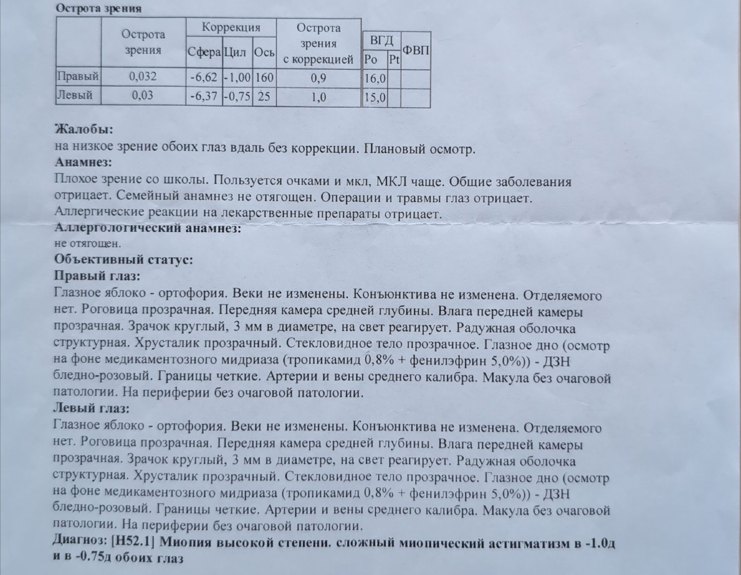 gercco писал(а):Добрый день. На медкомиссии поставили моипию средней степени. Результаты рефлектометрии на фото, проверяли прямо в военкомате, без капель поставили -6 на оба глаза. До этого проходил проверку в частной клинике год назад и месяц назад(без капель), фото приложил. Смог запросить кое как направление на РКОБ г.Казань. Будут ли там складывать sph и cyl? Насколько правомерно попросить об этом врача? И по показателям у меня зрение ухудшается?