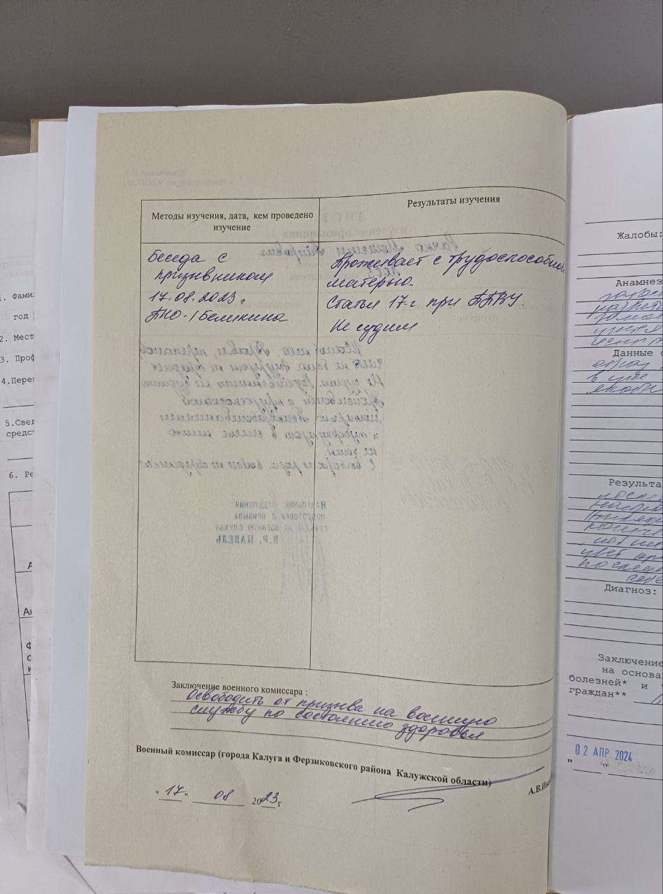 Re: Военкомат и заключение комиссара в листе изучения призыв