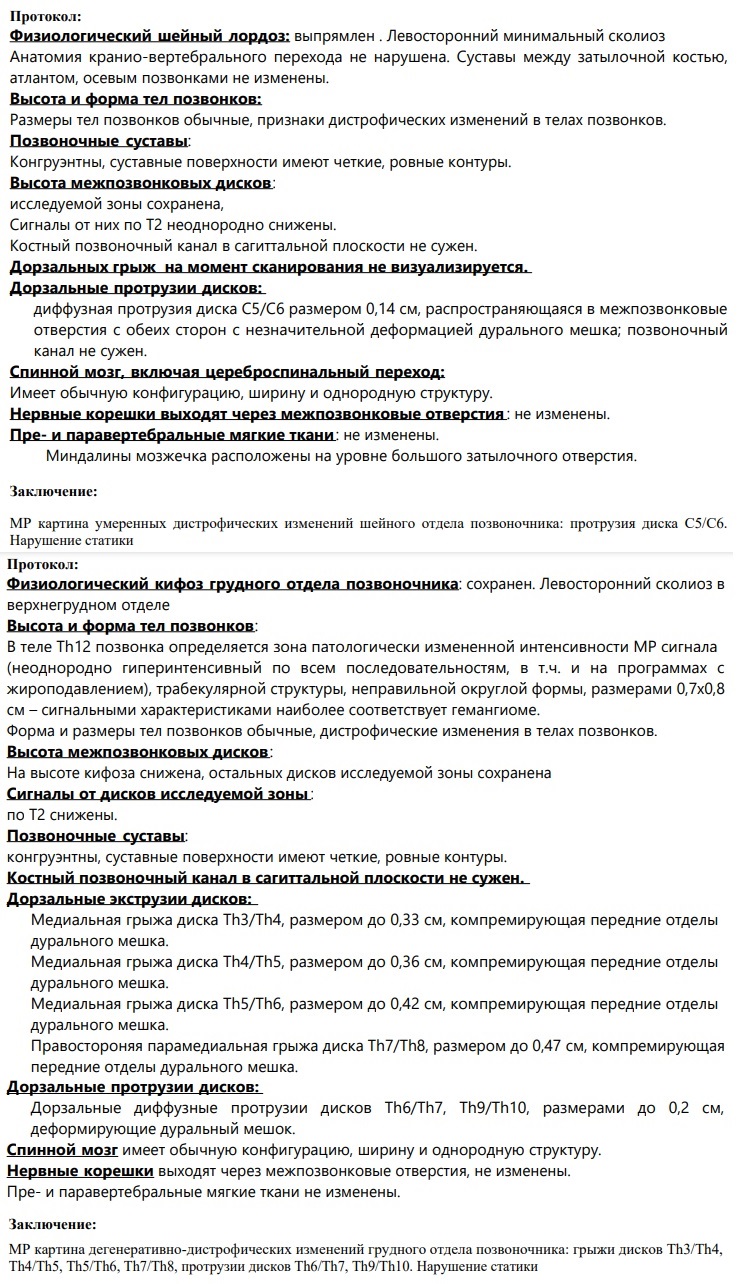 Здравствуйте. Длительное время беспокоят периодические боли в спине, отдающие в ноги. На первых 4 картинках результаты МРТ, КТ, электронейромиографии и консультации нейрохирурга примерно 3 лет давности. На последней картинке результат осмотра невролога примерно 1.5 лет давности, где указана дорзалгия и стато-динамические нарушения. Проблема в том, что наличие нарушений функции мне писали только в некоторых результатах осмотров, а без этого, как я понимаю, минимум категории В добиться не получится. Можете, пожалуйста, ответить на следующие вопросы: