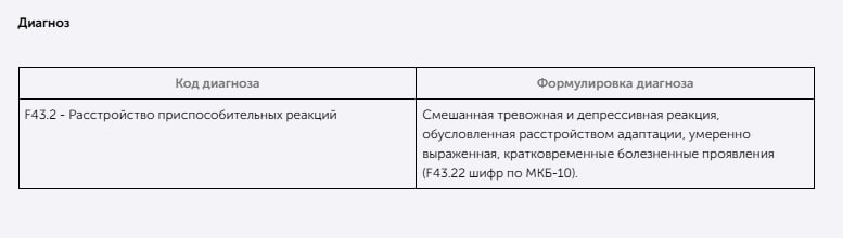tyler писал(а):Добрый день, у меня такая ситуация: стою на консультативном учете в ПНД с июля 24 года, летом был в дневном стационаре и вышел с диагнозом f21.8. в октябре поехал с ним в военкомат (епп), мне там поставили категорию "Б-4" и проигнорировали выписку, пожал жалобу, прошел КМО в декабре, где дали направление на доп обследование. вышел с диагнозом - Смешанная тревожная и депрессивная реакция, обусловленная расстройством адаптации, умеренно выраженная, кратковременные болезненные проявления (F43.22 шифр по МКБ-10). потом в январе отлежал в пкб по собственному желанию на лечении, диагноз f21.8, сейчас принимаю медикаментозную терапию