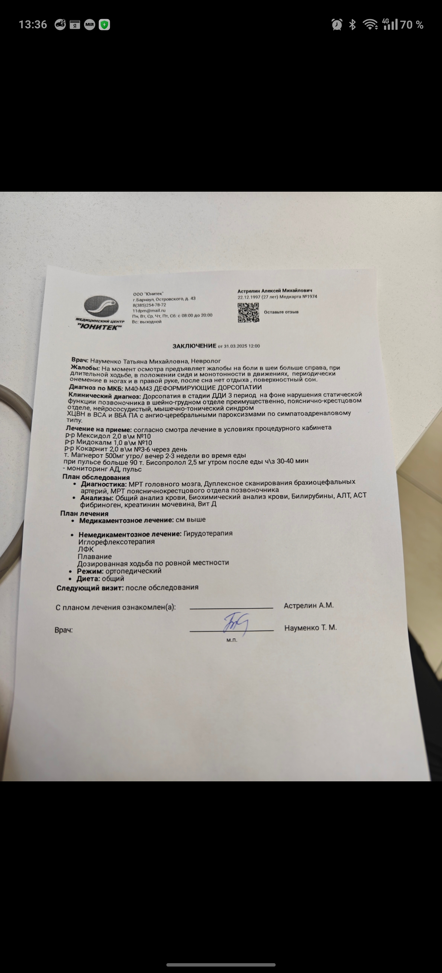gua писал(а):Здравствуйте, попав на прием к ортопеду получил от него комментарий, что "это вам к неврологу" надо, к тому же, по 66 ст в) требуется межпозвонковый остеохондроз (поражение до 3 межпозвонковых дисков) с болевым синдромом при значительных физических нагрузках и четкими анатомическими признаками деформаций. Как я понимаю – у меня это есть, к тому же получил диагноз дорсопатию и нарушение статической функции позвоночника. Думал, что дорого может быть достаточно для 66 статьи. Извините, что лишний раз вас побеспокоил.