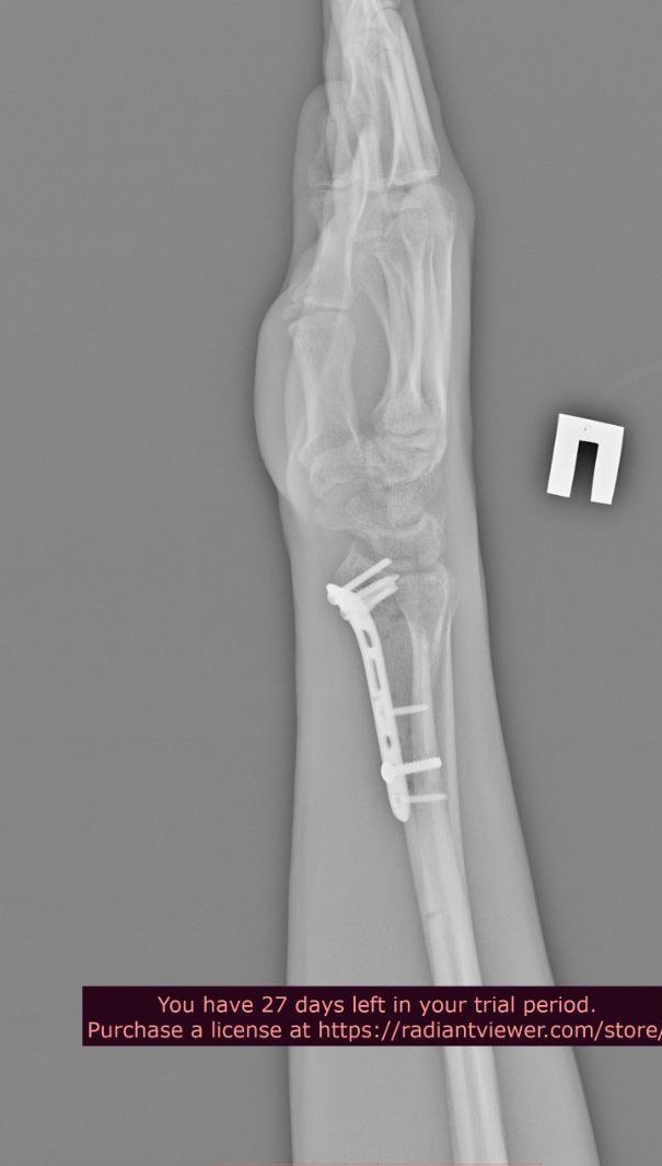 Kirill002885 писал(а):Добрый день. Два года назад упал с большой высоты, из-за чего мне установили металлоконструкции в плечевой и локтевой костях левой руки и в лучевой кости правой руки. Снимки ниже. Также имеются ограничения кисти на правой руке (из-за наличия пластины в лучевой кости), она разгибается максимум на 60 градусов из 90. Также, локтевая кость не разгибается до конца на пять градусов (что несущественно, но факт есть). Хотел бы уточнить, имею ли я возможность в моей ситуации получить категорию "В"? Спасибо.