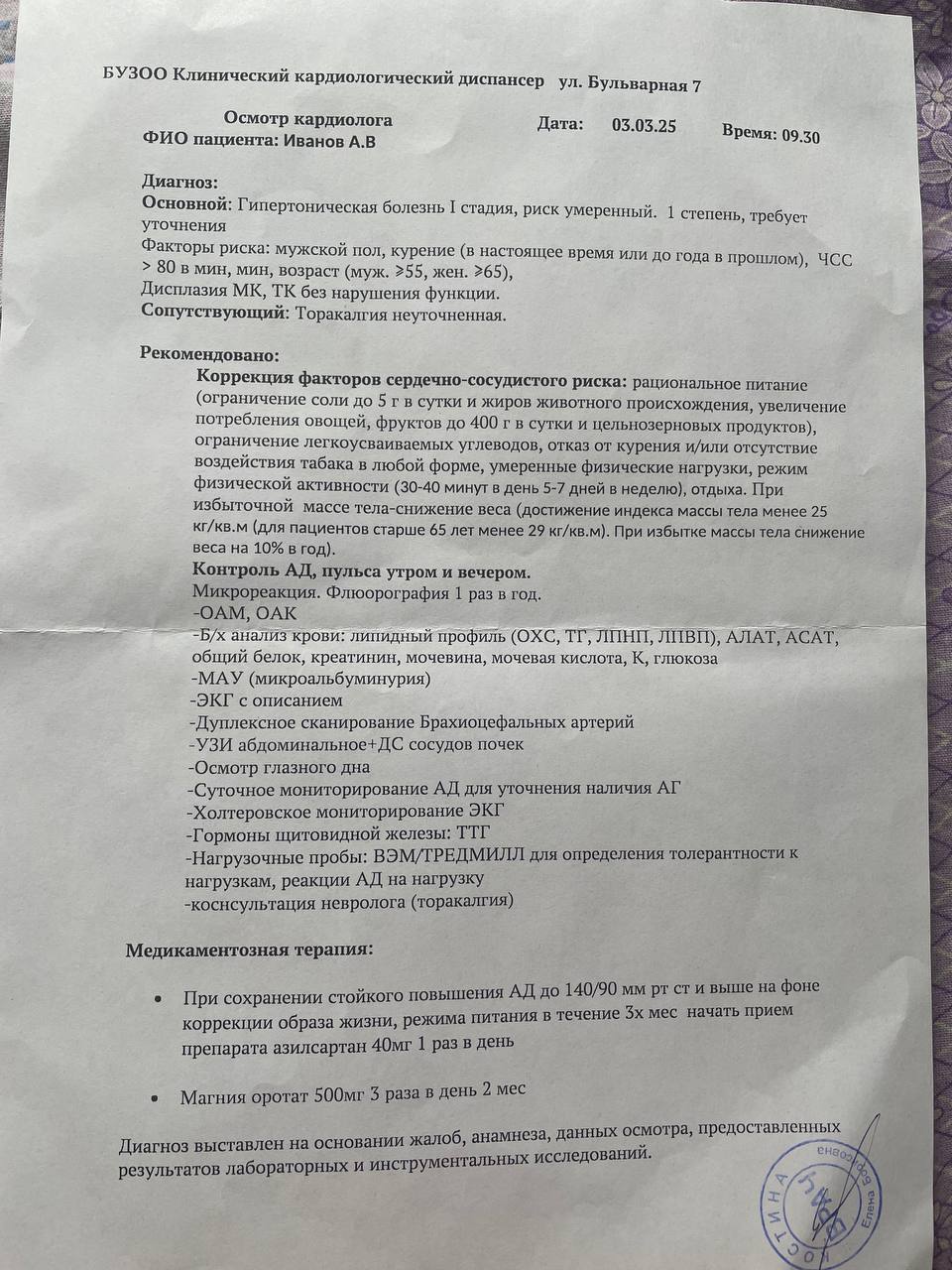 Даниил20381 писал(а):Здравствуйте. Подскажите, пожалуйста. Перед весенним призывом на осмотре у кардиолога поставили неуточненный диагноз гипертоничкской болезни стадии 1, степени 1. 17 апреля явка в военкомат, терапевт военкомата должен выписать направление на дообследование?