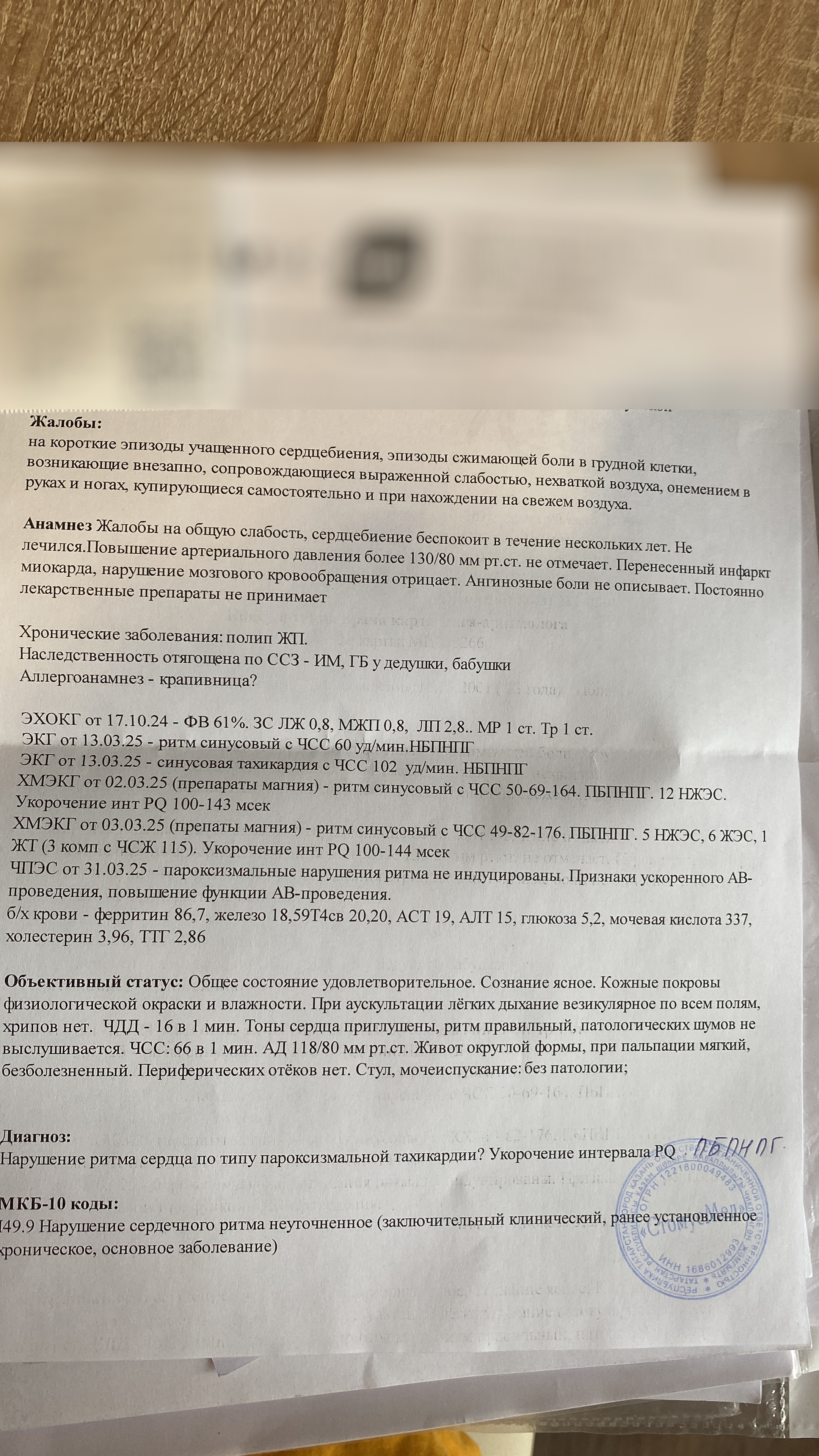Опубликуйте в полном виде фотографии самых свежих медицинских заключений врачей кардиолога и аритмолога.