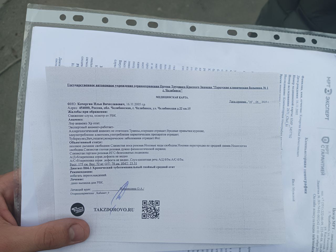 Для определения категории годности к военной службе вам необходимо опубликовать в полном виде фотографию самого свежего медицинского заключения врача-оториноларинголога.