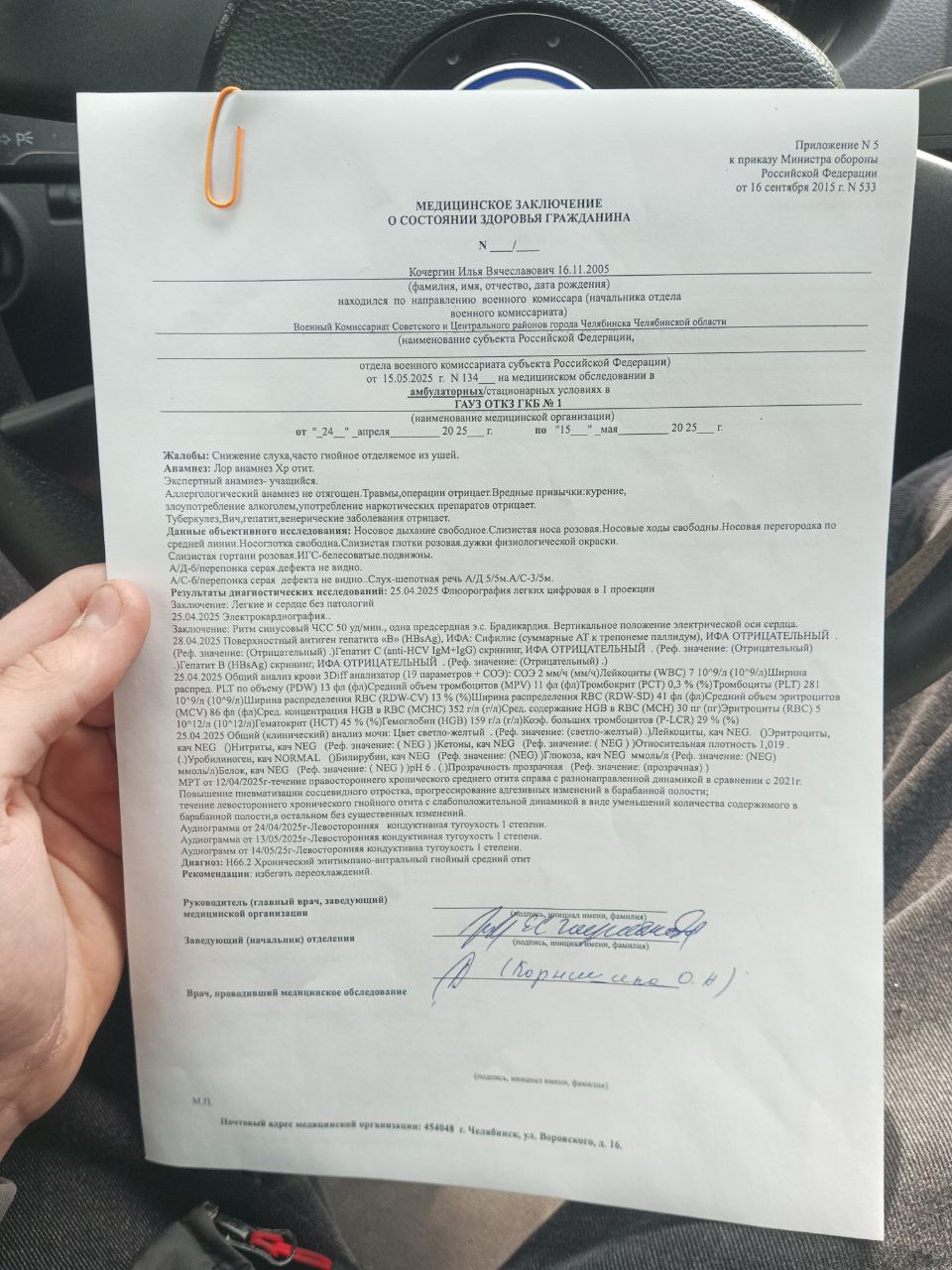 Евгеш писал(а):Теперь ожидаем решение обласного военкомата по категории В!