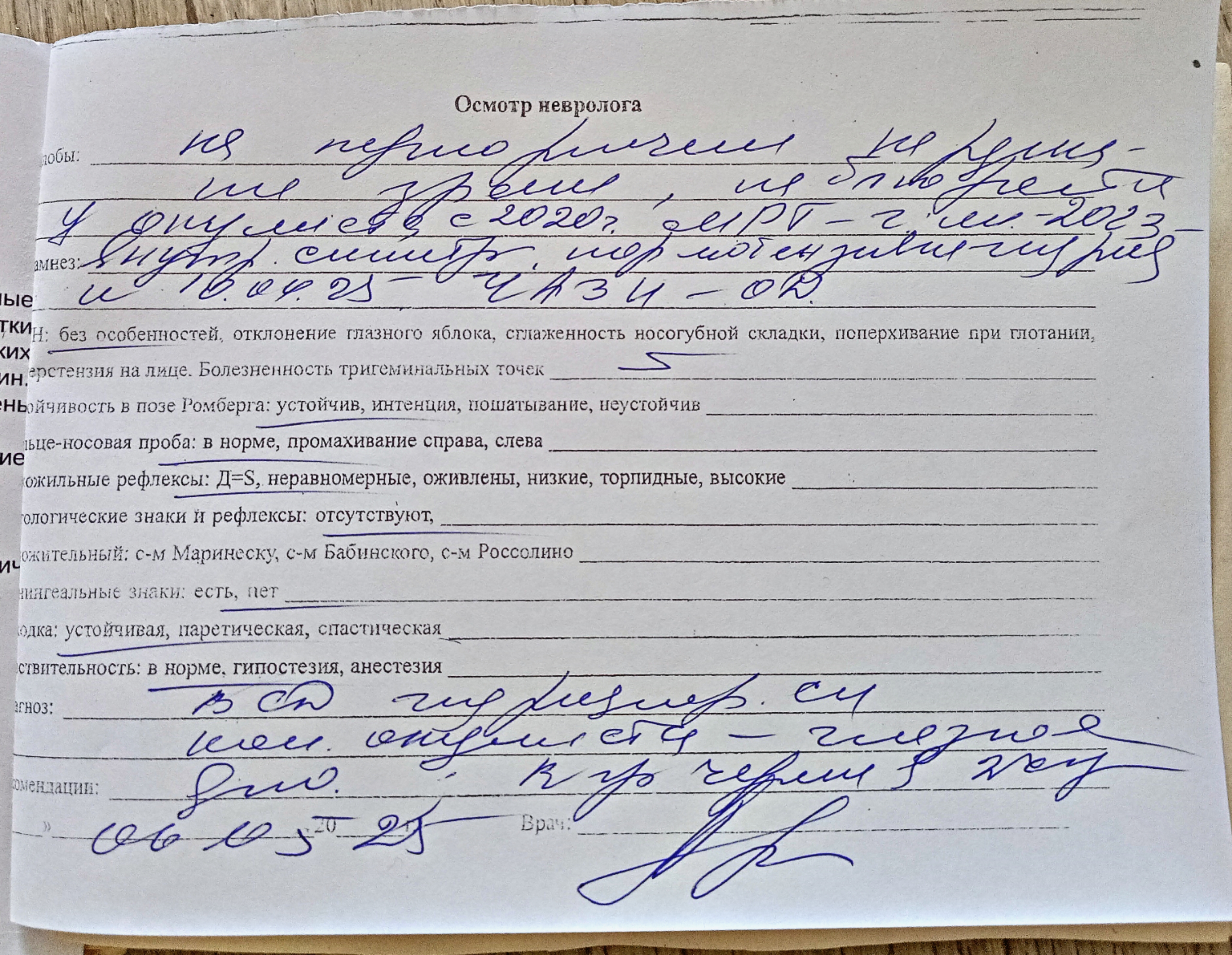 Aleksey Info писал(а):den98 писал(а):Здравствуйте, Алексей! Сходил к неврологу, как вы и сказали. Заключение мне не поставили, аргументируя это тем, что у меня нет заключения от моего окулиста, несмотря на то что диагноз ЧАЗН был поставлен мне в гос. клинике, и направление туда я брал, как раз-таки, у своего окулиста. А также сказали сделать рентген головного мозга, несмотря на то, что гидроцефальн. синдром у меня стоит с детства, и это зафиксировано в моей детской мед карте, а также имеются относительно свежие пометки. В общем не суть. Вопрос в следующем, может ли данный осмотр, прикрепленный на фото, рассматриваться как подтверждение моих диагнозов? Или получение "заключения" обязательно? Спасибо!