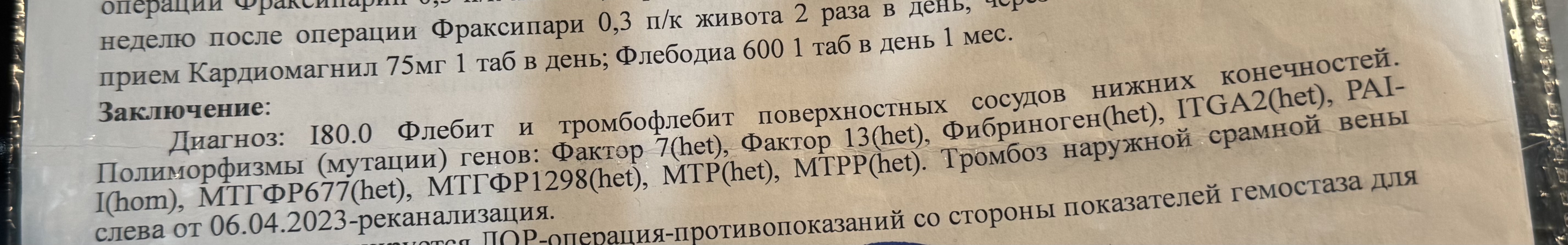 Вот документы о врожденной тромбофилии и о том, что был тромб, и есть мутация генов