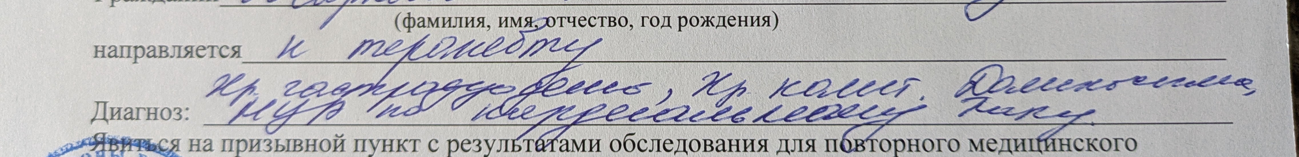 Гость 9 писал(а):Скажите пожалуйста, а если долихосигма прописана в направлении от военкомата к терапевту, значит ее будут учитывать?