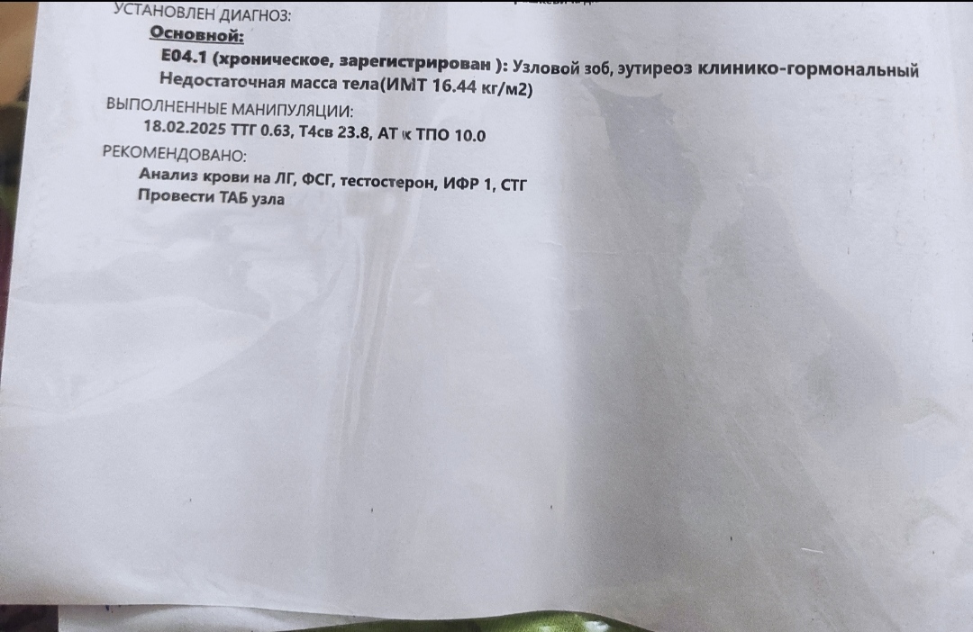 Moksemm писал(а):Здравствуйте. При последнем обследование поставили категорию 13В НГМ. как дефицит массы тела и наличие узлового зоба второй степени по Bethesda с повышением ТТг. Поставили с переосвидетельствованием, и сейчас его снова буду проходить. Сейчас уже поставили Ti-rads 3, за это время масса тела не изменилась 16 ИМТ, осталась на той же отметке, но ТТг уже якобы в порядке, сам узловой зоб увеличился на 1мм, структура неоднородная локально, ровные контуры, овальной формы. На какую категорию мне рассчитывать сейчас?