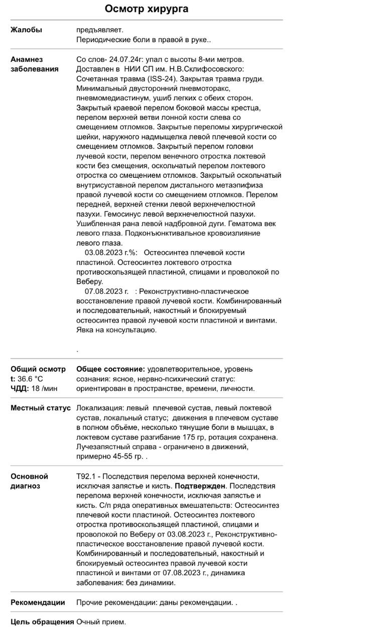 2 года назад получил тяжелые травмы, в результате чего мне установили металлоконструкции в плече и локте левой руки и в луче правой руки.