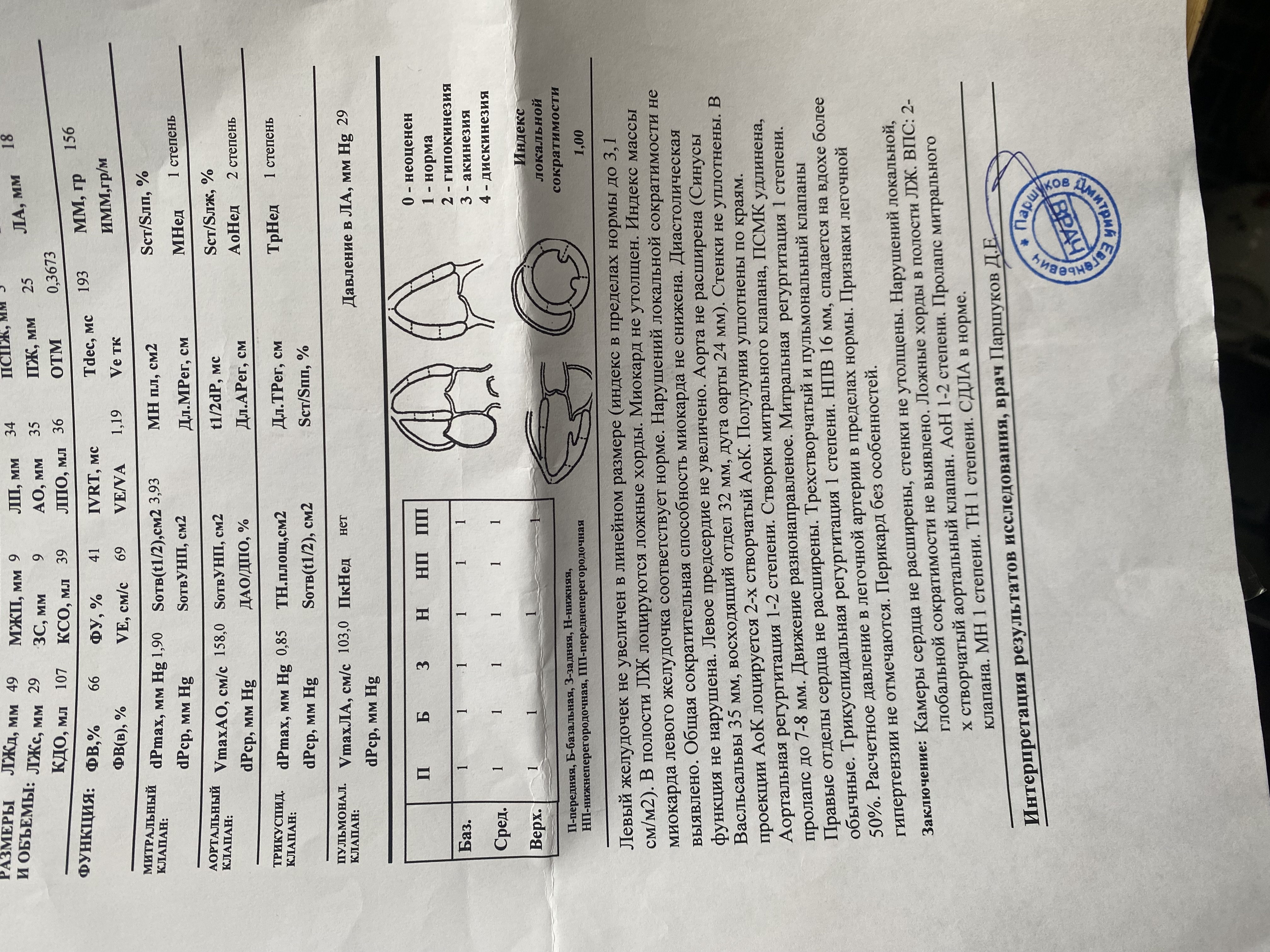 В вашем результате Эхо-КГ сердца вышеуказанной информации - нет, следовательно её необходимо получить при следующем обследовании.