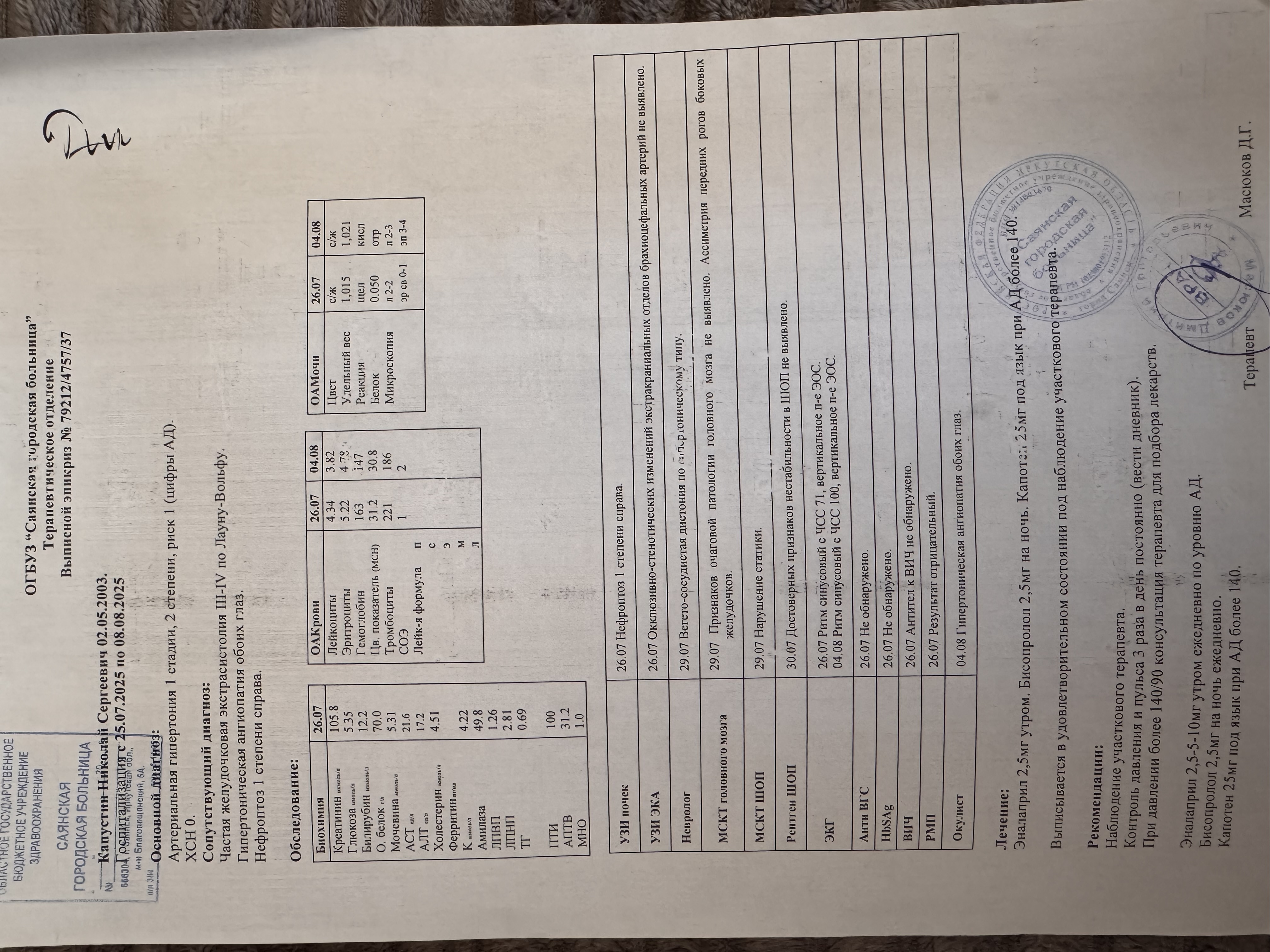 Я не врач-кардиолог и могу ошибаться, но считаю, что вам необходимо обратиться к врачу-кардиологу и обговорить с ним вопрос постановки диагноза: "Гипертоническая болезнь 2 стадии" вместо 1 стадии.