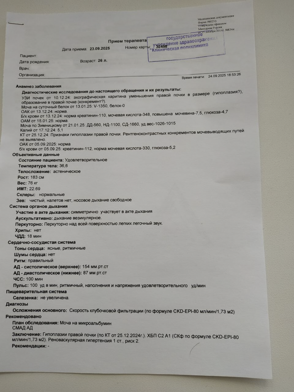 Имею врожденную гипоплазию правой почки, последнее УЗИ от 12.2024: