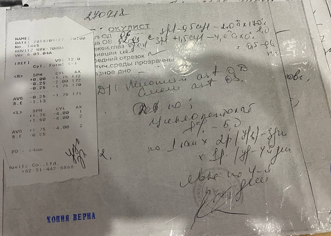 Какой категории годности может присвоить военкомат при таком зрении, как указано на фото?
