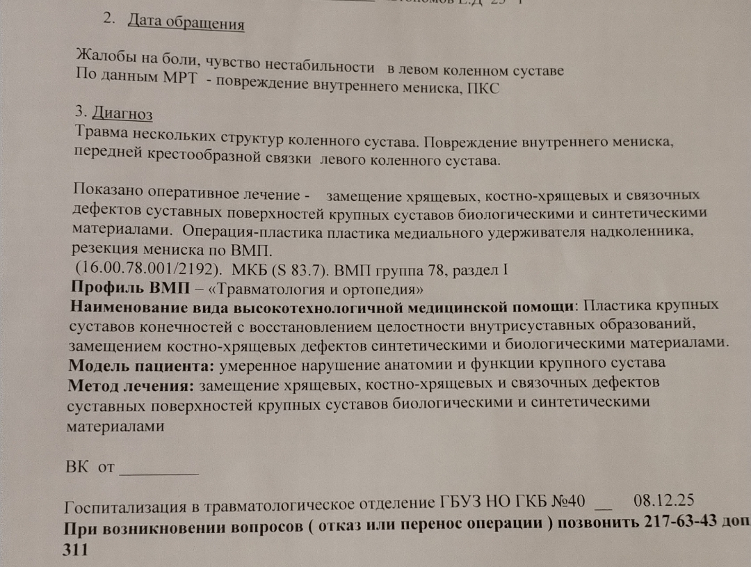 Егор128 писал(а):Здравствуйте, имею на руках заключение МРТ и 2 заключения от врачей травматологов. Последний из врачей напрвил на операцию на 8 число декабря. В 20 числах октября вызывают в военкомат на медосвидетельствование. Подскажите как мне лучше поступить в данном случае. С данными заключениями от врачей у меня есть шанс получения категории В и могут ли я рассчитывать на данную категорию после операции? Все заключения врачей и МРТ прикрепляю
