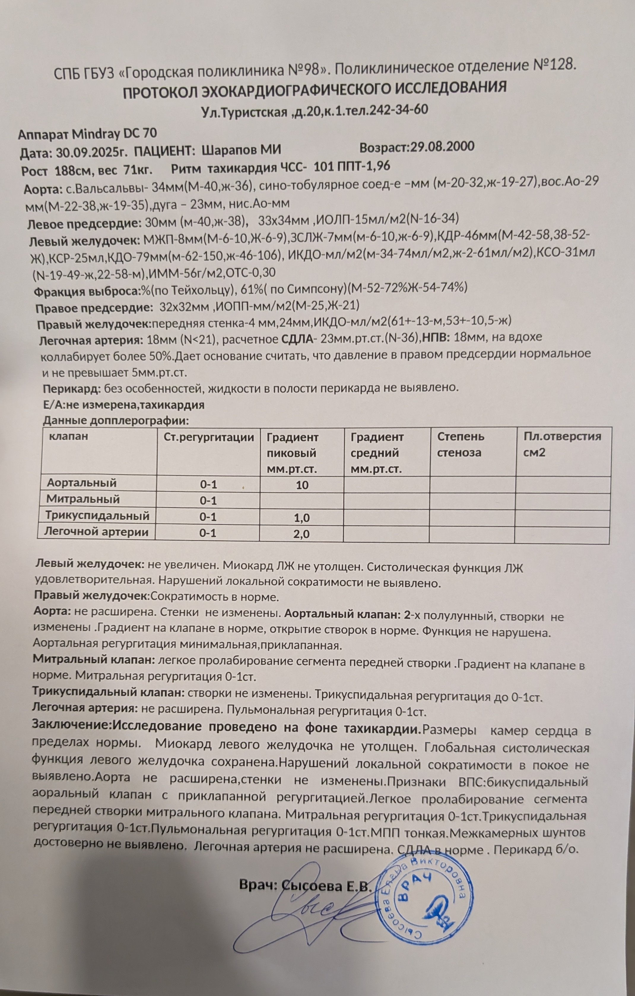 В итоге принял решение посетить кардиолога и пройти УЗИ, где получил такое заключение УЗИ, как на фото, фото приложил