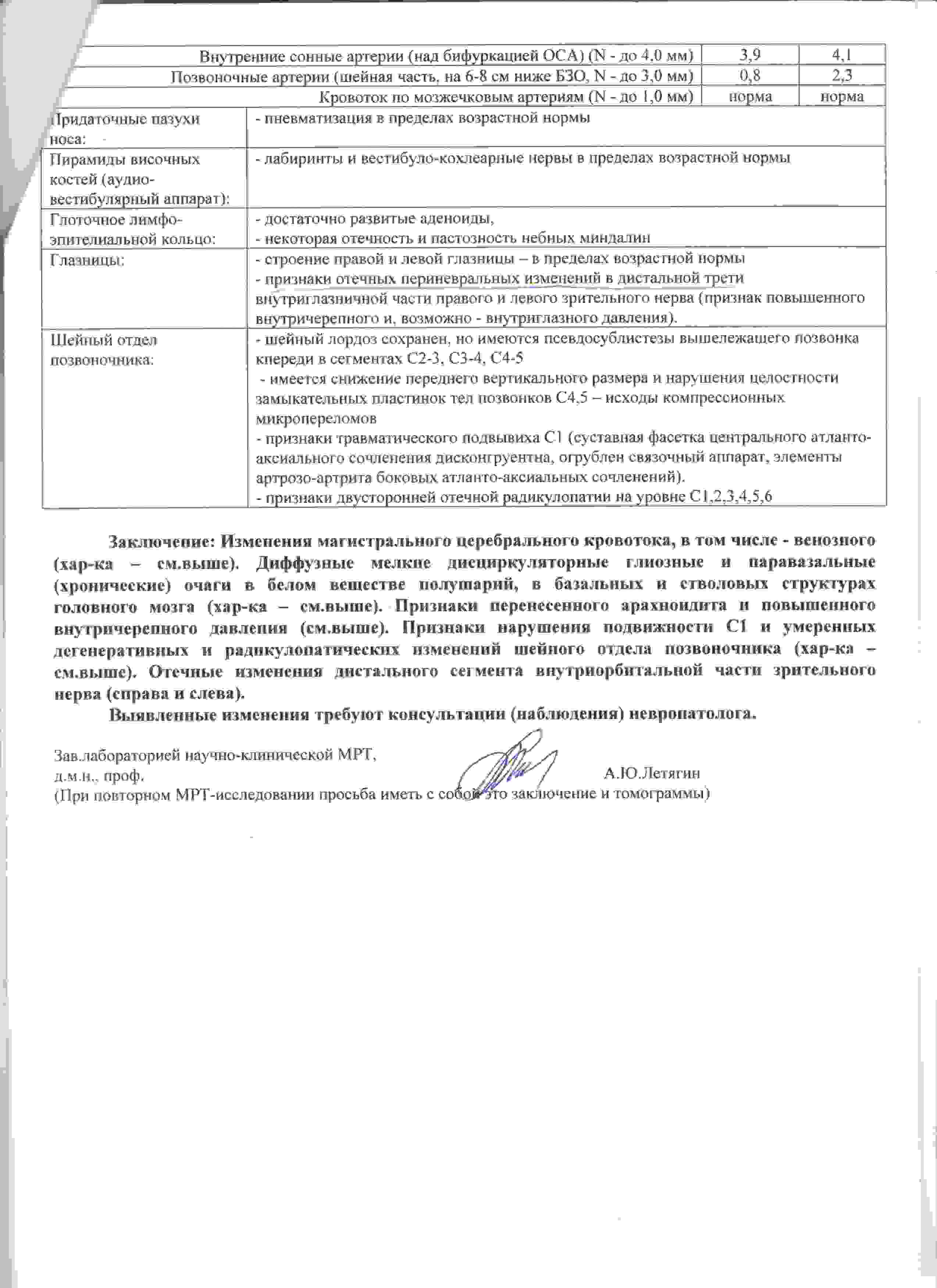 Здравствуйте! Оцените, пожалуйста, результаты МРТ спины, шеи и головы.
