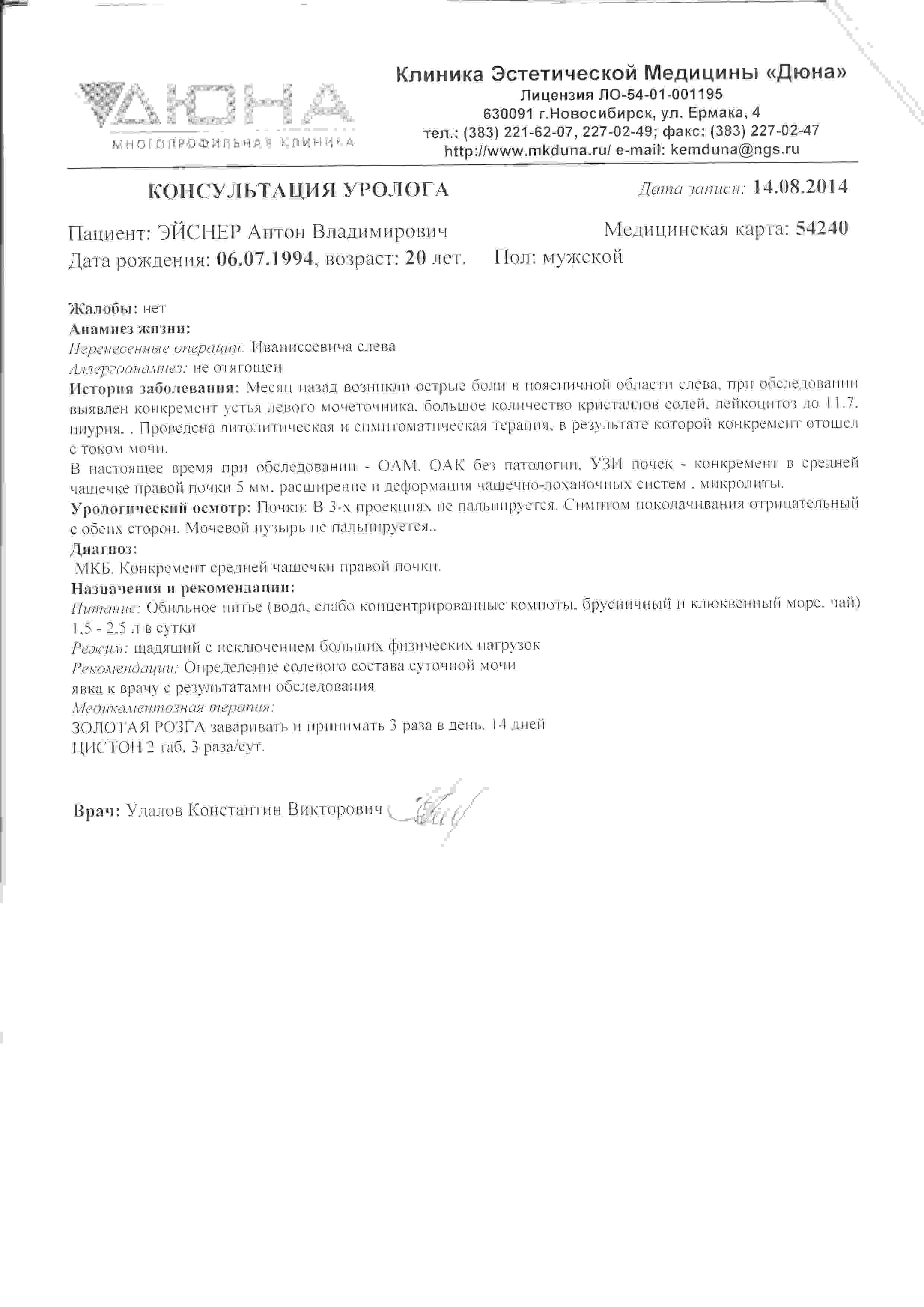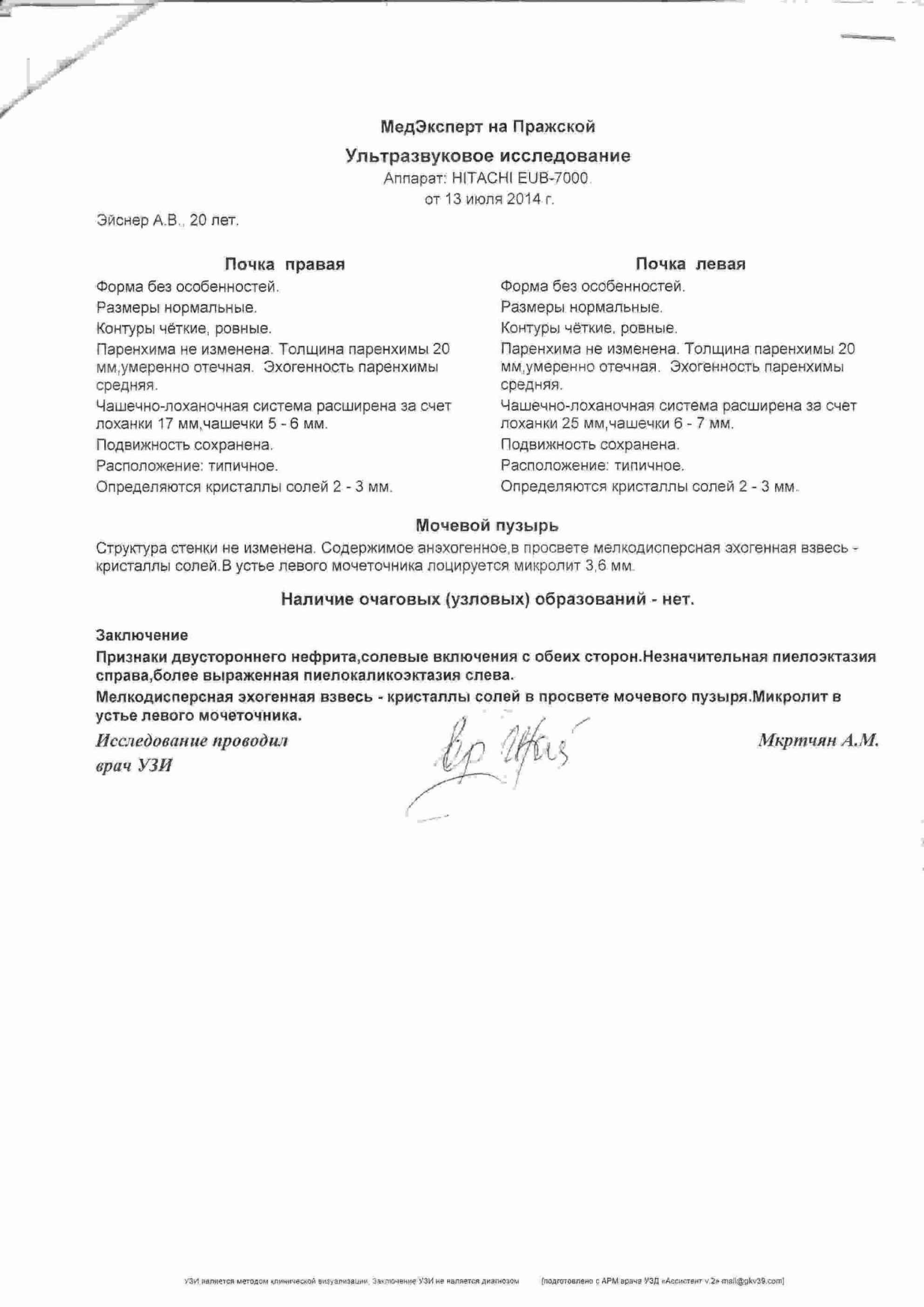 У брата с июля прошлого года начала сильно болеть спина, на УЗИ был обнаружен камень в мочеточнике размером 5мм., кристаллы солей в мочевом и пр. Камень этот вышел, следующий (3мм) тоже, но спина болеть не перестала, - сделали МРТ (и позвоночника, и головы, тк на головные боли жаловался тоже), а там, на мой взгляд, мрак и ужас. Но назначения нейрохирурга были отменены урологом до достижения стойкой ремиссии. К слову, в Калининградской обл. больнице ему поставлен таки диагноз - МКБ.