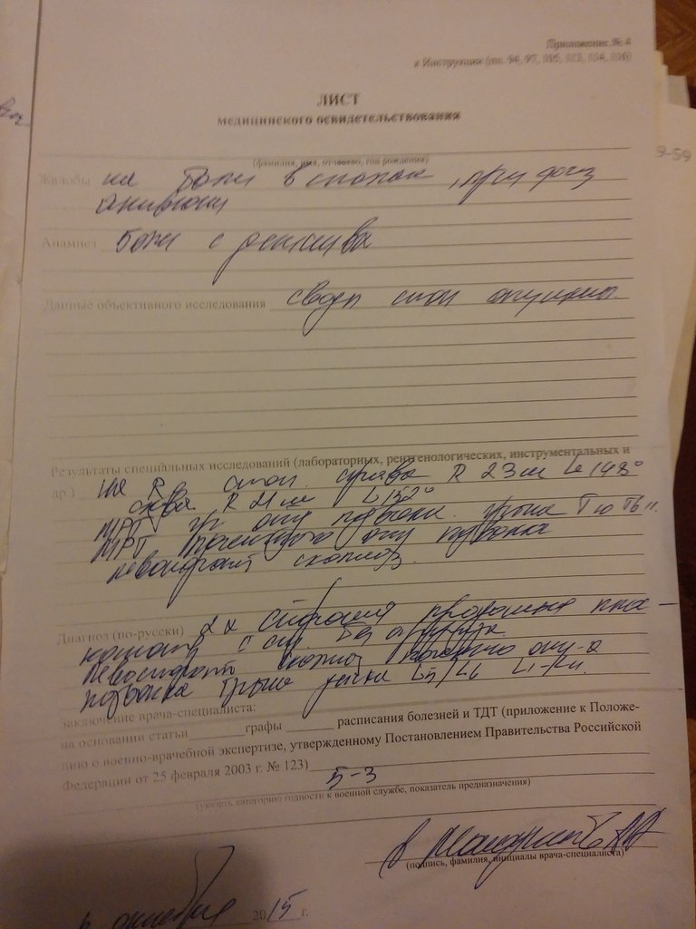 -Болевой синдром при физической нагрузке должен быть подтвержден неоднократными обращениями за медицинской помощью, которые отражаются в медицинских документах освидетельствуемого.:
