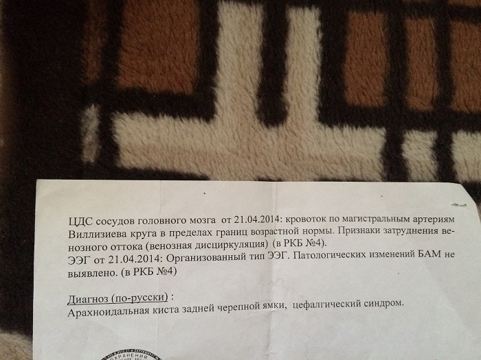 Re: Арахноидальная киста задней черепной ямки. цефалгический