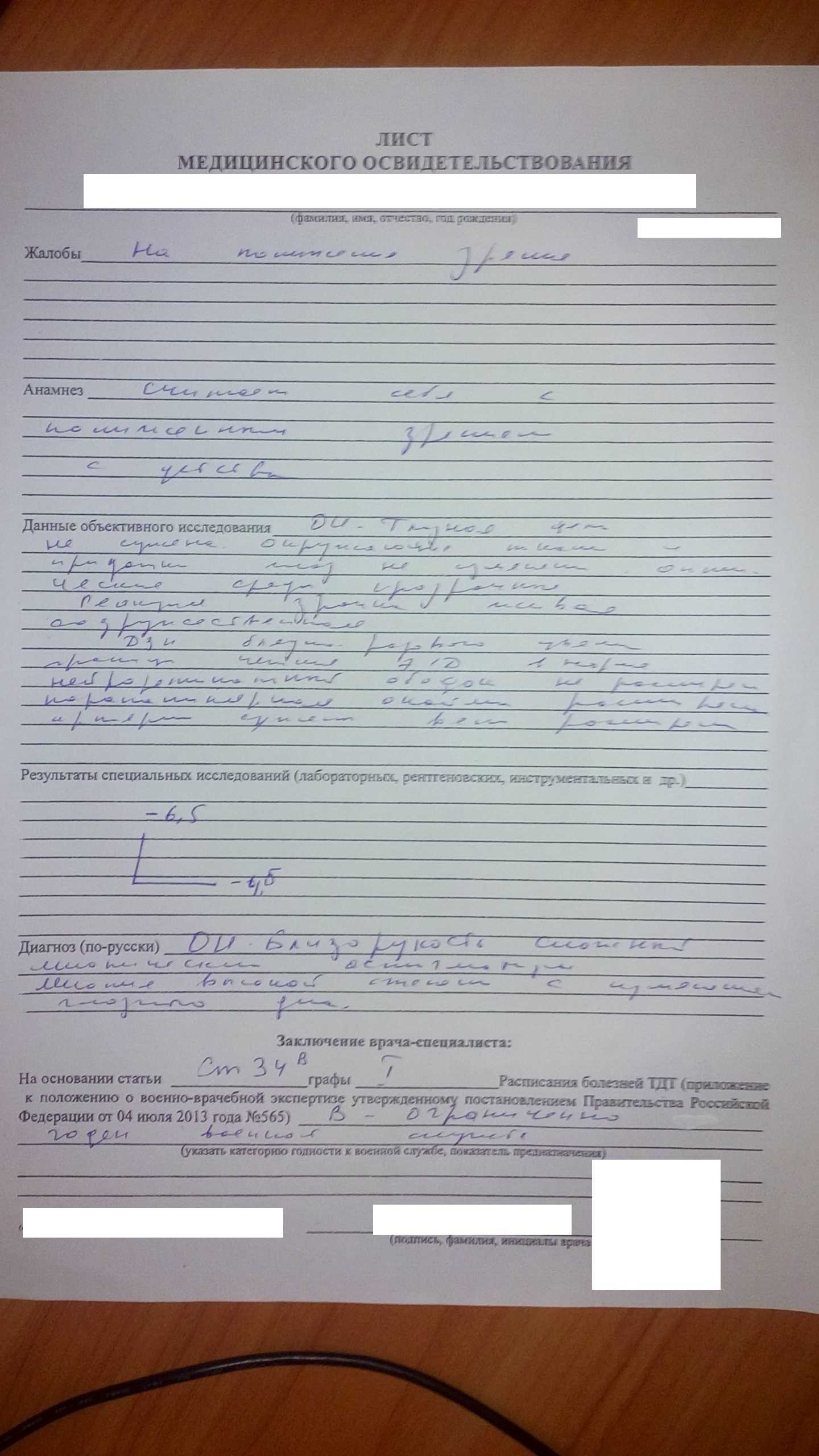 Врач этот вроде еще и военкоме на комиссии сидит, и поэтому такой вопрос: он ничего не перепутал?