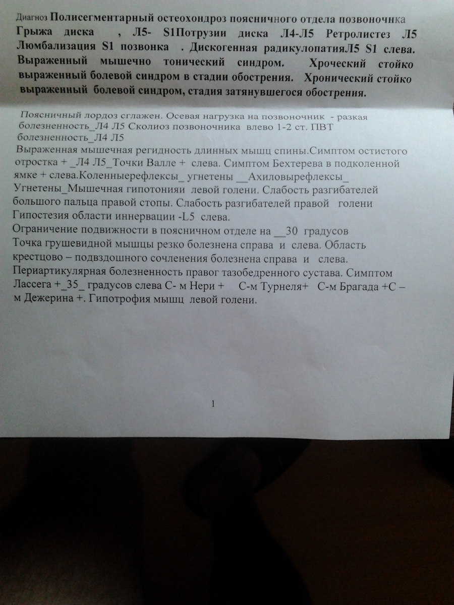 Re: Остеохондроз, грыжа L5-S1, болевой синдром