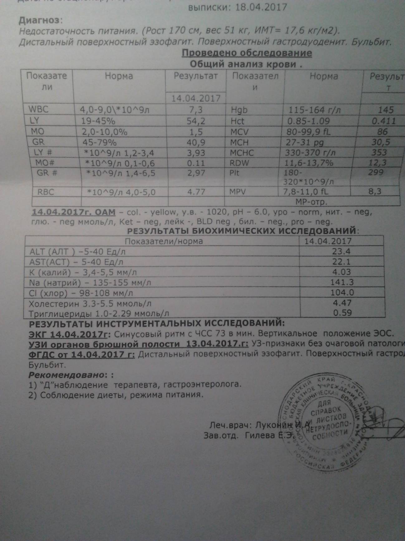 Василий Дмитриевич писал(а):При ИМТ в пределах нормы и отсутствии заболеваний ЖКТ нет оснований для направления в медицинскую организацию.